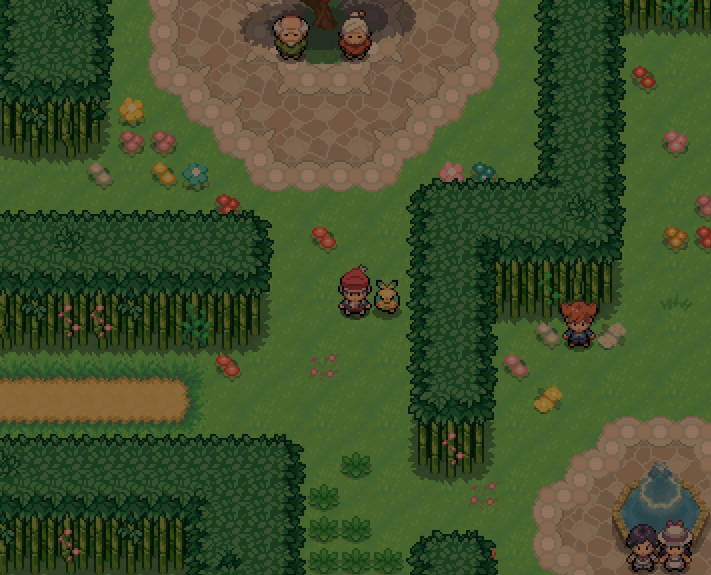 Next to one of the entrances to the bamboo maze, you'll find Romeo, a young man who's staring at a girl picking flowers. Talk to him, and he'll tell you he wants to get the girl's attention, but he's too scared to go into the garden himself because he isn't a trainer. He asks you to bring him 4 Verdant Blooms from the garden. As you gather them, one of the blooms will reveal itself to be a Pokémon, which will attack you. Bring the flowers to him and he'll get flustered before Juliet interrupts, noticing he has the flowers, and asks him on the date. Nervous but excited, Romeo leaves with her but first he fully awakens your Easter Totem to Lv 5.