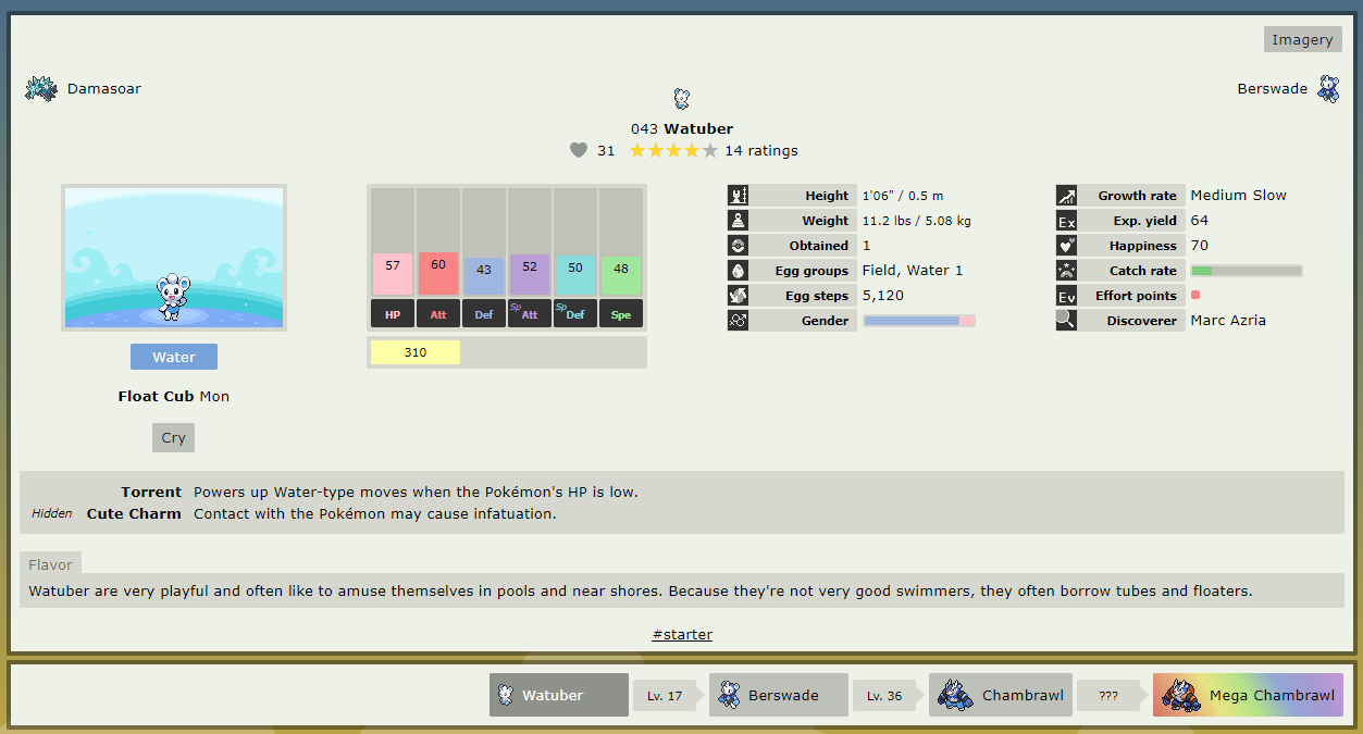 Screenshot of Watuber's dex page from the Atlas region.